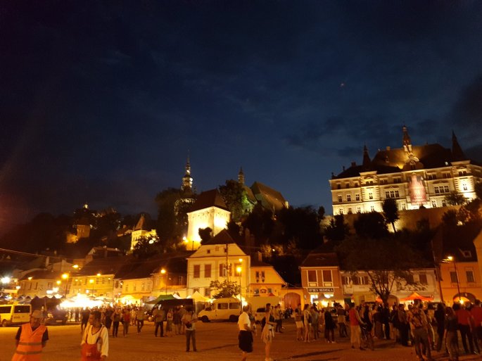 În Sighișoara medievală este însă o noapte luminoasă, în care „Luna sângerie” de afară invocă povestea cu dragoni de la Artgotica, Truveri, Cimpoieri hunedoreni și cavaleri care se antrenează cu hărnicie 🙂 .