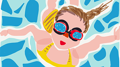 Înaintează în stilul broaștei, iscând cercuri în jur. Strălucirea apei o învăluie ca un reflector pe scenă și astăzi ar vrea să fie văzută. Dar obosește repede; o preocupare mai urgentă pune stăpânire pe ea. Sub arșița orbitoare din bazin, i se pare brusc că se află prea departe de mal ...